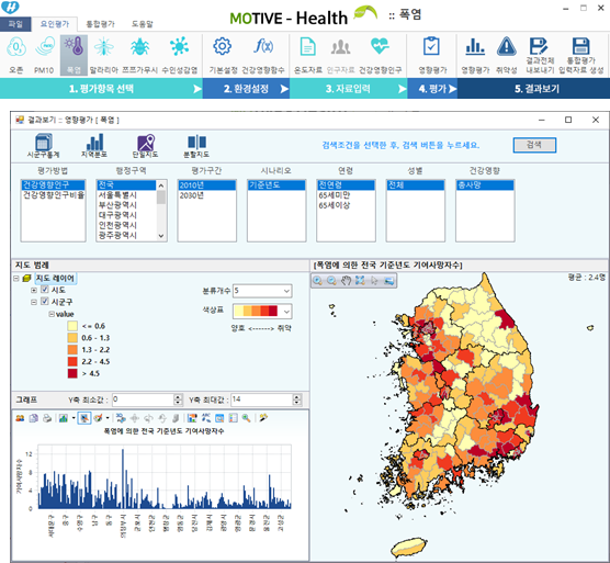 국내 자료와 대기, 감염병 인자별 건강영향을 기초지자체 단위로 평가하여 정책과 연계하여 활용할 수 있도록 한국형 건강영향 및 취약성 평가도구를 개발