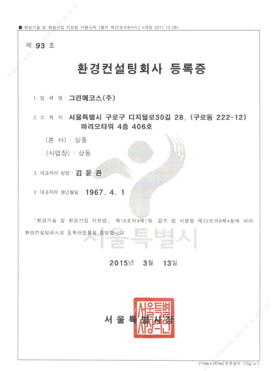 본사는 환경컨설팅회사로 등록되어 있습니다.