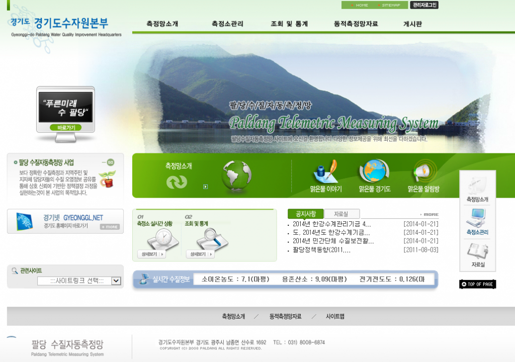 2014년 경기도 수질자동측정망 모니터링 및 유지관리 용역 작성일자 2014년 03월 28일2020년 08월 12일 글쓴이 GreenEcos 사 업 명:2014년 경기도 수질자동측정망 모니터링 및 유지관리 용역사업개요: 시스템유지보수, 수질, 웹기반사업기간: 2014. 3. 27 ~ 2015. 2. 28발주기관: 경기도팔당수질개선본부팔당수질자동측정망 사이트