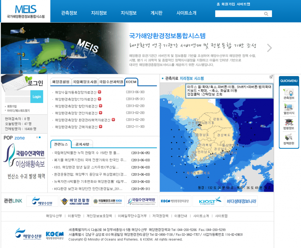 국가해양환경정보통합시스템 초기화면 (2013년)