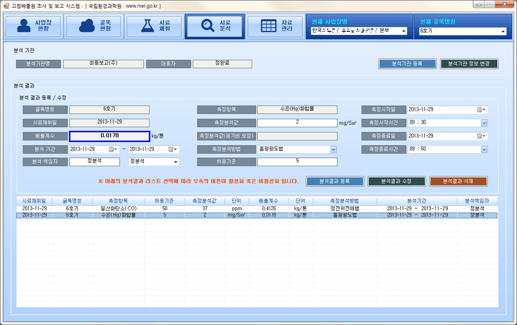 - 사업명: 고정오염원 대기오염물질 배출계수 DB시스템 개발