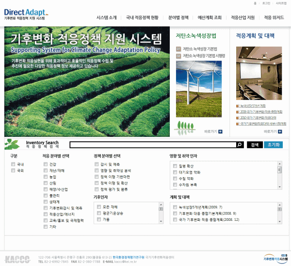 - 주요사업 내용: 적응정책 인벤토리 DB 갱신