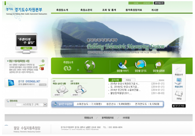 2017년 경기도 수질자동측정 관제시스템 유지관리 작성일자 2018년 01월 02일2025년 03월 07일 글쓴이 GreenEcos 사업명 : 2017년 경기도 수질자동측정 관제시스템 유지보수발주처 : 경기도 수자원본부사업기간 : 2017년 1월 ~ 12월실시간 수질측정 현황판측정소 실시간 정보
