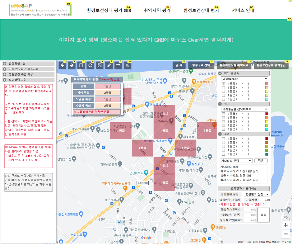 - 웹기반, 환경위험시설 취약지역과 환경보건상태 평가 정보제공 플랫폼 개발