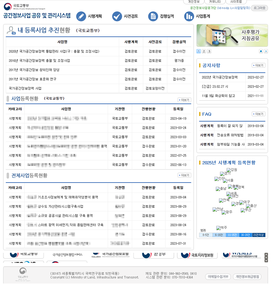 - 공간정보사업 공유 및 관리시스템 유지관리